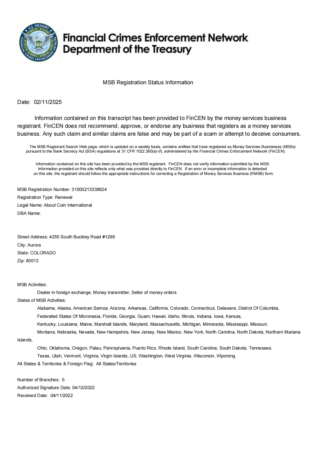 โœ… About Coin International has obtained the MSB (Money Services Business) license issued by the U.S. Treasury Department FinCEN, and is qualified to legally operate virtual currency trading services in the United States!