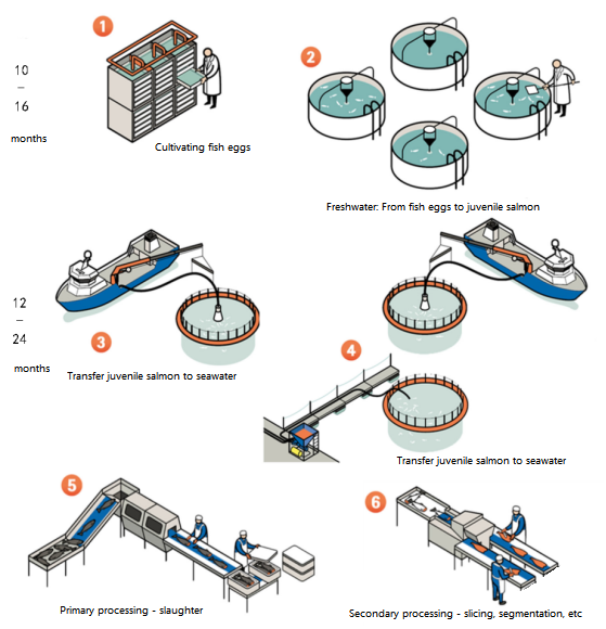 Salmon breeding and processing processes