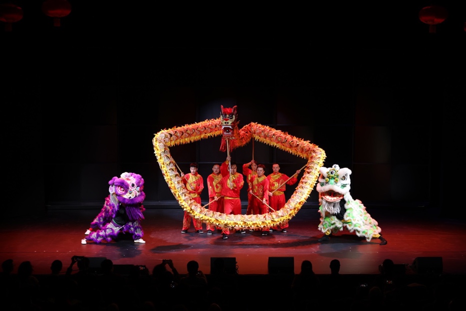 Teatterin lavalla "Onnellista kiinalaista uuttavuotta" -kulttuuriesitys eteni suunnitellusti. Perinteiset kiinalaiset musiikkikappaleet, kuten "Loisto" ja "Iloinen ode", pitivät yleisön lumoissaan. Tanssiesitykset, kuten "Mulanin oodi" ja "Soihtu, syty uudelleen", toivat iloa katsojille. The Nomadic esitti kappaleen "Ikävä äitiä" ja esitteli Xoomei'n (kurkkulaulu) ja Morin Khuurin (hevoskallon viulu) taiteellisuutta kappaleessa "Kymmenentuhatta hevosta laukkaa eteenpäin", tarjoten kurkistuksen Kiinan Sisä-Mongolian ruohoaavikoiden viehätykseen.
