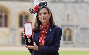 The widow of British author Sir Martin Amis was also at Windsor Castle to receive the insignia for her late husband’s knighthood from the Princess Royal.