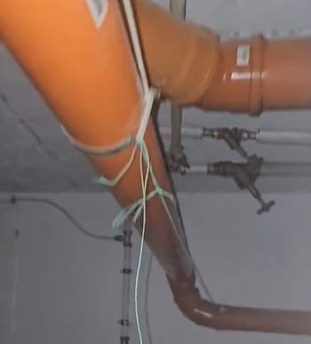 The footage shows other rooms with exposed pipes,open paint containers and jugs full of chemicals.