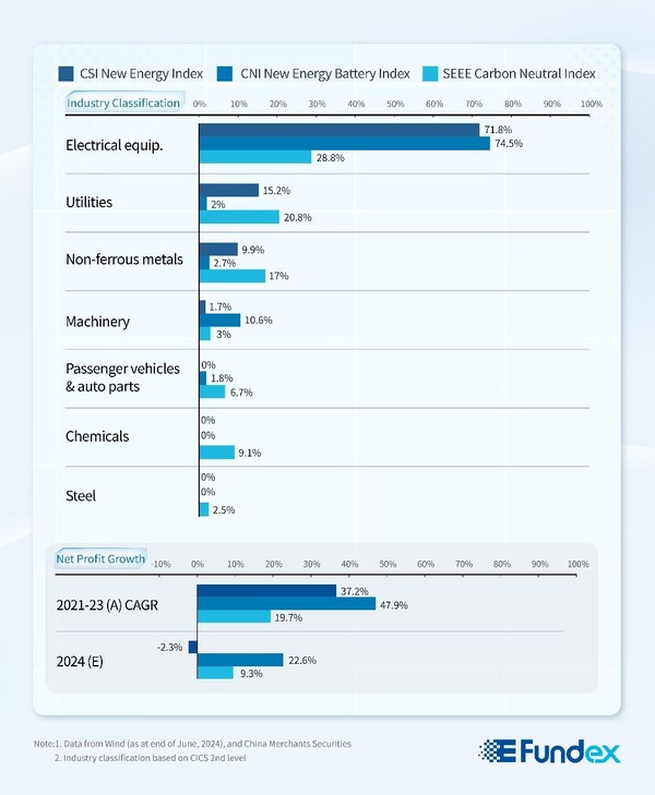 Beyond new energy industry,China is driving a comprehensive green transformation towards a more sustainable economy and the electric vehicle industry serves as a prime example. Data from China Passenger Car Association revealed that in July,retail sales of new energy passenger car outstripped that of conventional vehicles with the monthly penetration rate exceeding 50% for the first time. The CNI New Energy Battery Index is well poised to capture this trend,particularly focusing on energy storage system (ESS) battery manufacturing and integration. The only ETF dedicated to this index,E Fund CNI New Energy Battery ETF,aimed to benefit from the growth potential of its index constituents,with an expected net profit growth rate of 22.6% for 2024.