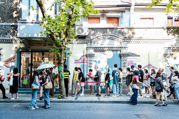 During the second Xiaohongshu Street Life Festival,people lined up along the streets of Shanghai to experience activities.