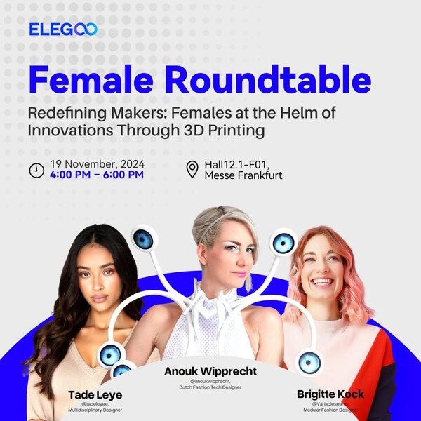 Elegoo will host a female roundtable at Formnext on November 19,featuring leading female designers and creators.