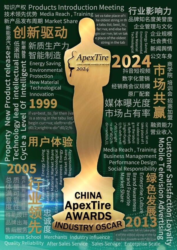 Empowering Chinese modernization through the development of new quality productivity in services and deepening industrial chain interaction and cross-sector integration are the key highlights of ApexTire 2024. This year's awards establish five core evaluation dimensions for brands: innovation-driven development,market synergy,user experience,industry leadership,and green growth.