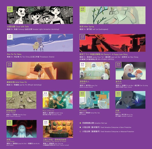 The ASP aims to promote the diversified development of local animation enterprises. Each edition sets up three different categories to provide support for animation enterprises at different stages of development,assisting them in producing higher-quality local animation works. One category specifically supports Animation Start-ups (16 companies) while other two categories support Small Animation Enterprises in Basic Productions and Small Animation Enterprises in Advance Productions (14 companies). A total of 30 animation enterprises will receive financial support of up to HK$600,000 to produce subsidised animations of at least 3 minutes,5 minutes and 10 minutes respectively.
