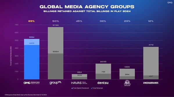 As reported in the recently published Global Media Agency New Business Barometer Q1-Q3 2024 - ananalysis of the global media agency marketplace from independent research companyCOMvergence- OMG was awarded $7.37 billion in client billings – including $4.4 million in retained business - during the first nine months of the year,outperforming its nearest competitor by more than 40 percent. Remarkably,OMG also earned the highest retention rate,successfully defending 85% of its billings in review while concurrently expanding its client roster.