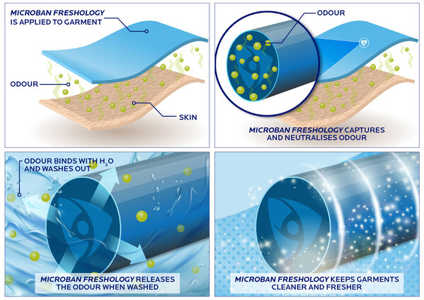 "Freshology was developed by balancing and optimizing performance between different chemical profiles," said Ryan Scott,senior product development chemist at Microban. "The technology offers key advantages for consumers: it effectively traps a wide range of body odors,unlike products that target only one specific odorant. Additionally,it improves moisture management and enhances the softness and feel of treated fabrics."