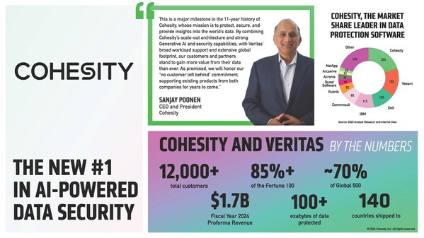 "This is a major milestone in the 11-year history of Cohesity,whose mission is to protect,secure,and provide insights into the world's data," said Sanjay Poonen,President and CEO,Cohesity. "By combining Cohesity's scale-out architecture and strong generative AI and security capabilities with Veritas' broad workload support and extensive global footprint,our customers and partners stand to gain more value from their data than ever. As promised,we will honor our "no customer left behind" commitment,supporting existing products from both companies for years to come. As we begin this new chapter,we are committed to driving industry-leading cyber resilience innovations to ensure we are the world's preeminent choice for data security with differentiated AI capabilities."