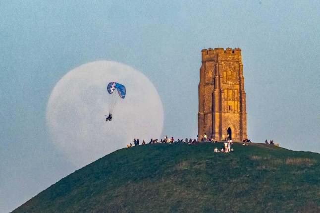 The almost-full Pink Moon rising from behind St Michael’s Tower on Glastonbury Tor yesterday (Picture: Alamy Live News)