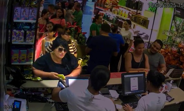 In chilling shop CCTV footage,accused Jordelia Pereira Barbosa,36,is seen wearing sunglasses and a black wig,hiding her dyed blonde hair.