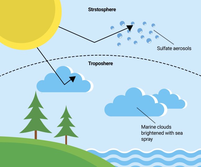 How solar geoengineering could work to reflect the sun’s rays back out into space (Picture: Metro Graphics)