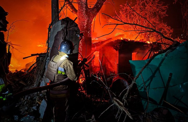Flames and smoke billow from buildings during mass Russian drones and missile strikes on Ukraine’s capital on July 4,2025 (Picture: Getty)