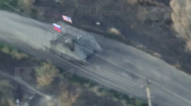 A Russian news outlet claimed Kremlin soldiers had captured the American-made vehicle (Picture: RT/east2west news)