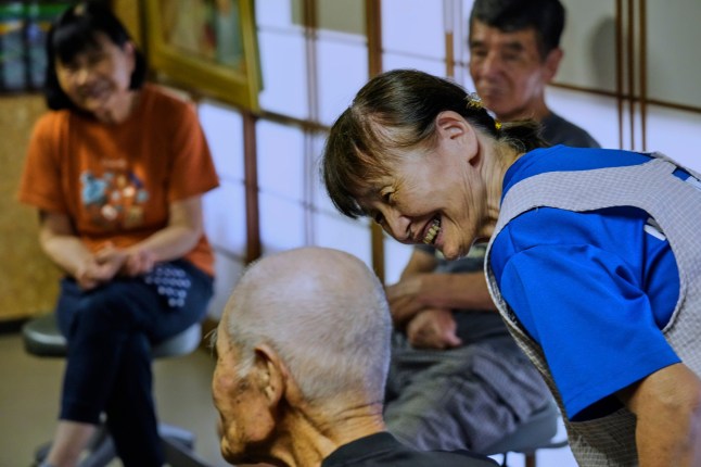 Yukiko Akuzawa (right) helped his father up the mountain (Picture: AP)