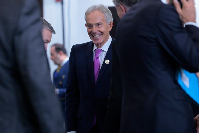 Blair was present during Trump’s speech in Egypt today (Picture: Getty)
