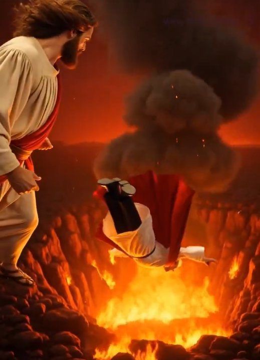 Start your day informed with Metro's News Updates newsletter or get Breaking News alerts the moment it happens.The image marks an almighty improvement between Heaven and Washington relations after Iran’s AI video of Jesus throwing Donald Trump down to hell.‘Your reckoning has come,’ Jesus says in the clip,as he floats down to Trump,surrounded by American bald eagles.‘What is this? No!’ the AI Trump screams,as Jesus punches him in the face blood squirting out of his nose and he tumbles screaming into a fiery pit.Trump defended the original image,telling reporters: ‘It wasn’t a depiction. It was me. I did post it,and I thought it was me as a doctor. And had to do with the Red Cross as a Red Cross worker,which we support,and only the fake news could come up with that one.Jesus delivered a sucker punch to Trump in the video (Picture: Iran Embassy)‘It was supposed to be me as a doctor making people better,and I do make people better. I make people a lot better.’The post suffered a huge backlash with Truth Social followers calling him ‘the AntiChrist’ and accusing him of blasphemy.One replied to the now deleted image: ‘The book of Revelations speaks of this,are you literally depicting yourself as a saviour or messiah? Just asking,as the Book of Revelations tells us the Antichrist will claim he is.’Trump has been under fire from Christians for the image,as well as his battle with Pope Leo,after he said he ‘wasn’t doing a good job’.Even the President of Iran waded into a feud between Trump and Pope Leo to defend the Catholic leader.Masoud Pezeshkian took to X and said he ‘condemned’ Trump’s claims that the Pope wasn’t doing a ‘good job’.Trump flew into a fiery pit while screaming (Picture: Iran Embassy)‘I condemn the insult to Your Excellency on behalf of the great nation of Iran,and declare that the desecration of Jesus,the prophet of peace and brotherhood,is not acceptable to any free person. I wish you glory by Allah,’ Pezeshkian wrote.Earlier today,the Pope spoke out after Trump shared an image of himself as Jesus Christ. Trump first slammed Pope Leo on Truth Social,saying the first American pope should ‘stop catering to the Radical Left’.Pope Leo rebutted the claims and said he plans to continue to speak out against the war,telling reporters: ‘I don’t want to get into a debate with ⁠him.‘I don’t ​think that the message of the Gospel is meant to be abused ​in the way that some people are doing. I will continue to speak out loudly against war,looking to promote peace,promote dialogue and multilateral relationships among the ​states to look for just solutions to problems.’Elsewhere,hopes have risen a second round of negotiations between the United States and Iran after almost seven weeks of war as Pakistan’s army chief met in Tehran with Iran’s foreign minister.The White House said any further talks would likely take place in the Pakistani capital of Islamabad,though no decision had been made on whether to resume negotiations.The US naval blockade of Iranian ports continued for a third day. The Trump administration warned of new economic sanctions on countries doing business with Iran,saying the Islamic Republic would feel the ‘financial equivalent’ of a bombing campaign.Get in touch with our news team by emailing us at .For more stories like this,check our news page.