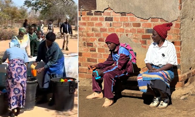 (Right) Madeline Mgwabi with her eldest grandson outside their home in the village of Libeni,Matabeleland North province,Zimbabwe (Picture: Gergana Krasteva)
